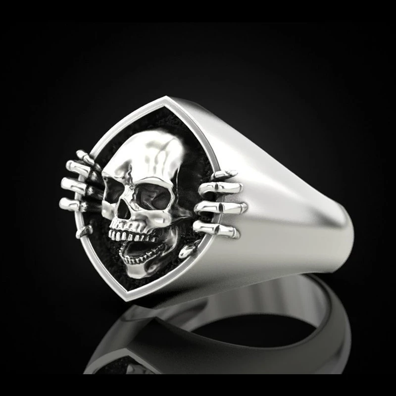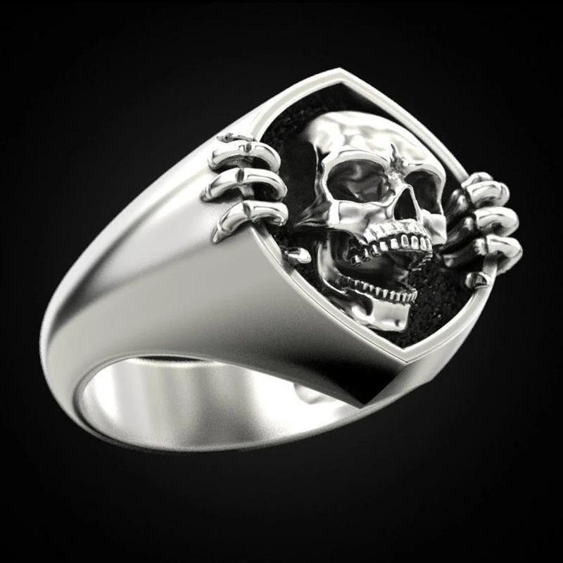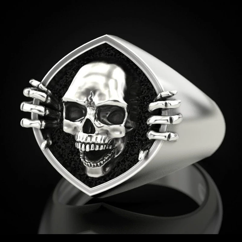 خاتم رجالي على شكل جمجمة بانك عتيق موصى به للبيع بالجملة خاتم إبداعي أوروبي وأمريكية