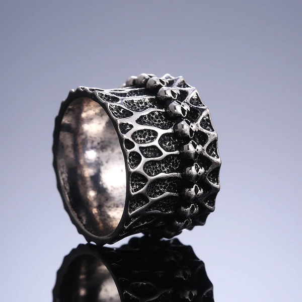 خاتم زهرة ميمونة محفورة بشكل كلاسيكي بتصميم عريض من خاتم مياو على الطراز العرقي من يونان، مجوهرات للرجال والنساء