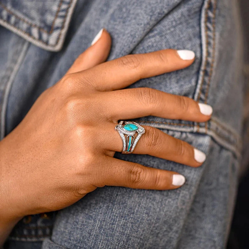 خاتم بتصميم أوروبي وأمريكي فاخر، خاتم عصري من الزركون على شكل عين الحصان، خاتم إصبع السبابة بتصميم مجوف متعدد الطبقات