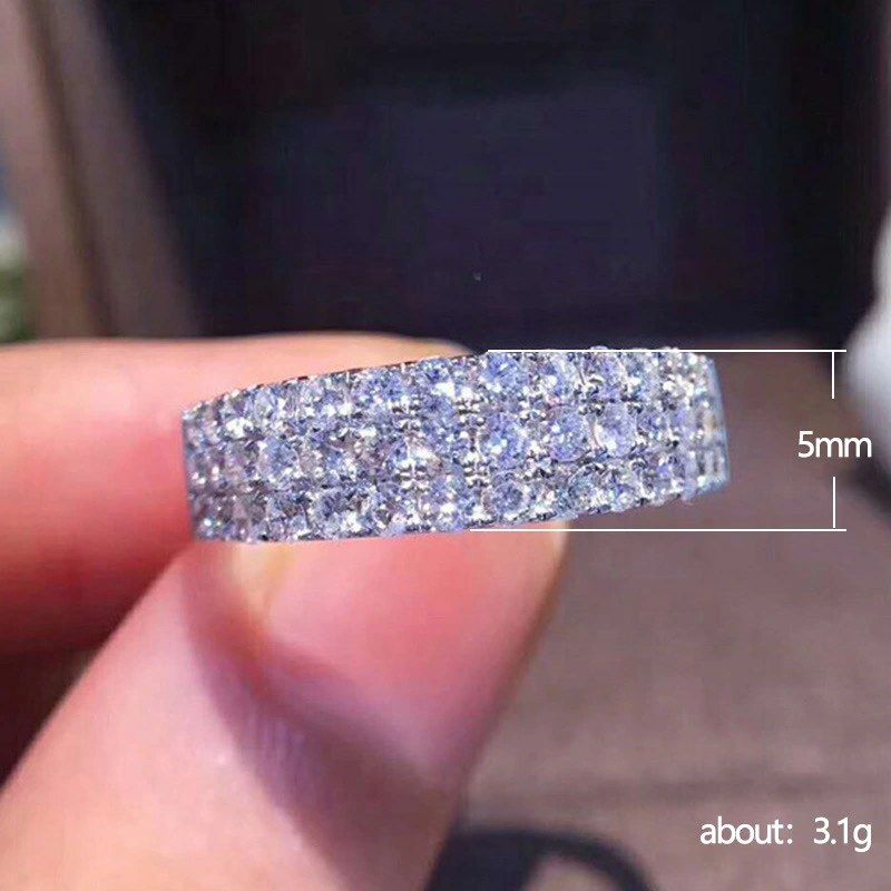 خاتم زركون بسيط مرصع بثلاثة صفوف من المجوهرات الأكثر مبيعًا خاتم عصري جديد مجوهرات يدوية بالجملة