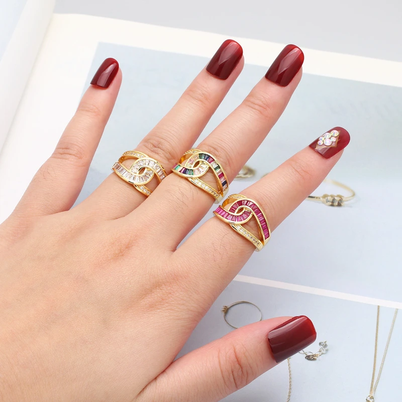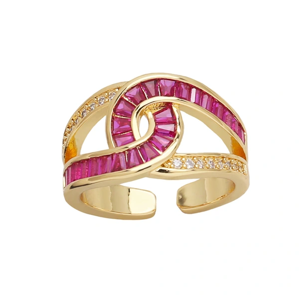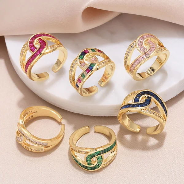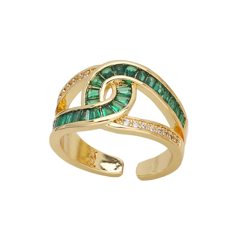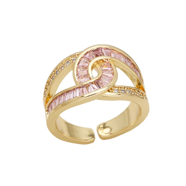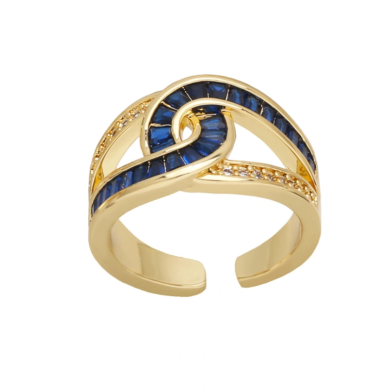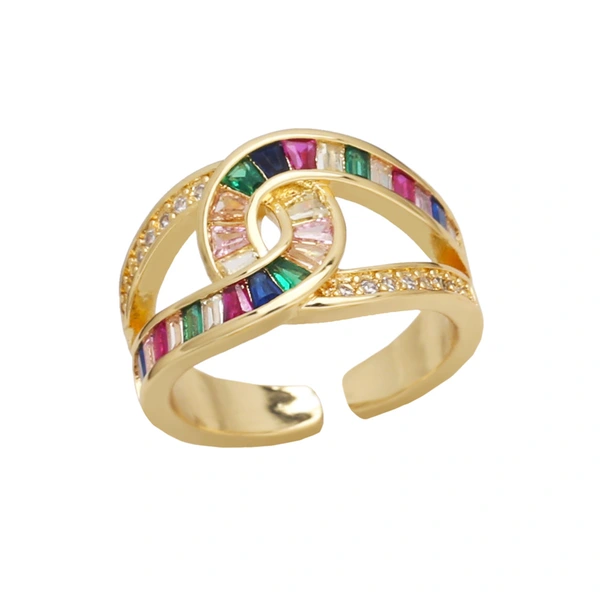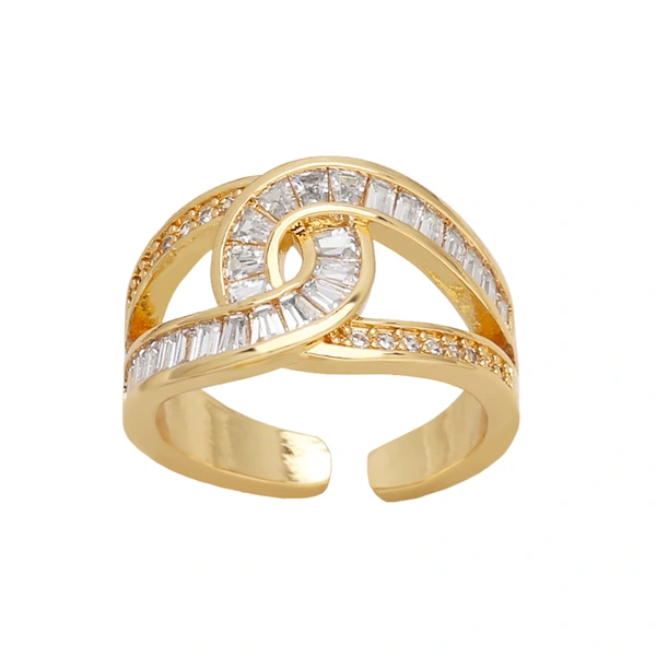 خاتم زركون بسيط مزدوج الطبقات عالي الجودة مطلي بالذهب خاتم مفتوح على شكل صليب ris69