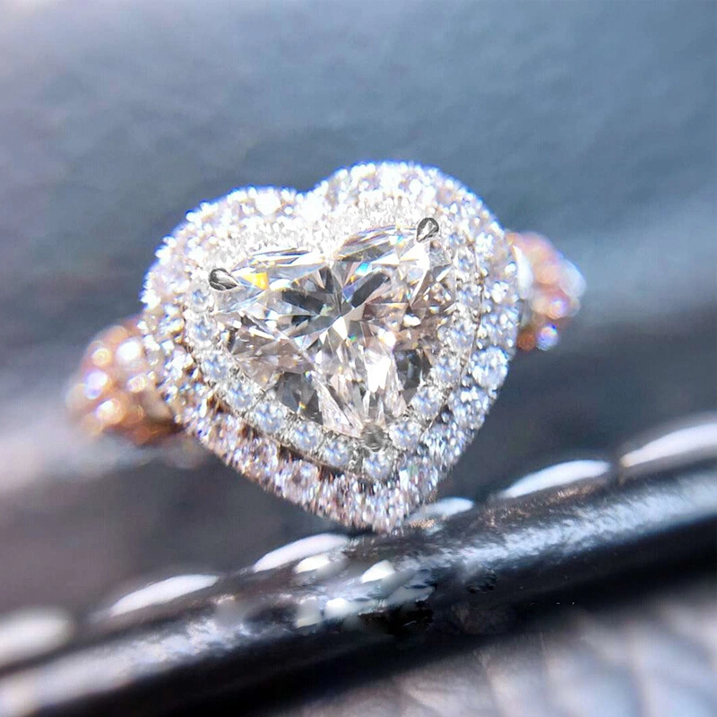 خاتم زركون بسيط وأنيق على شكل قلب خاتم بلاتين مطلي بالنحاس مبيعات مباشرة من المصنع