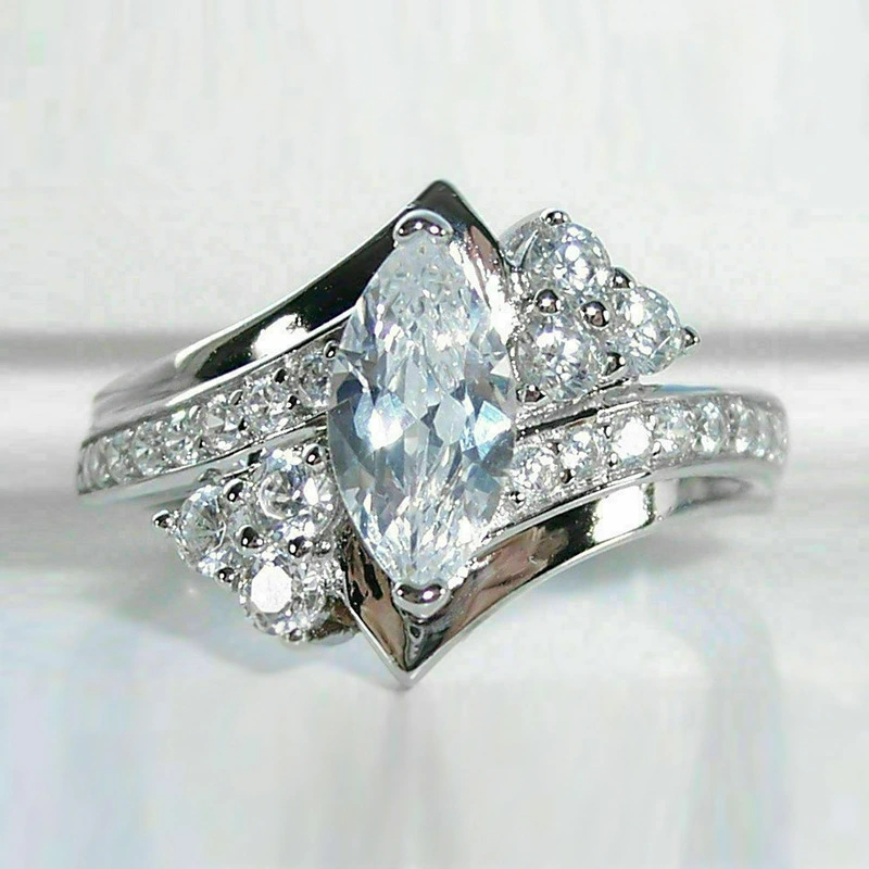 خاتم زفاف جديد من الزركون اللامع على شكل عين حصان إبداعي مجوهرات حية للنساء