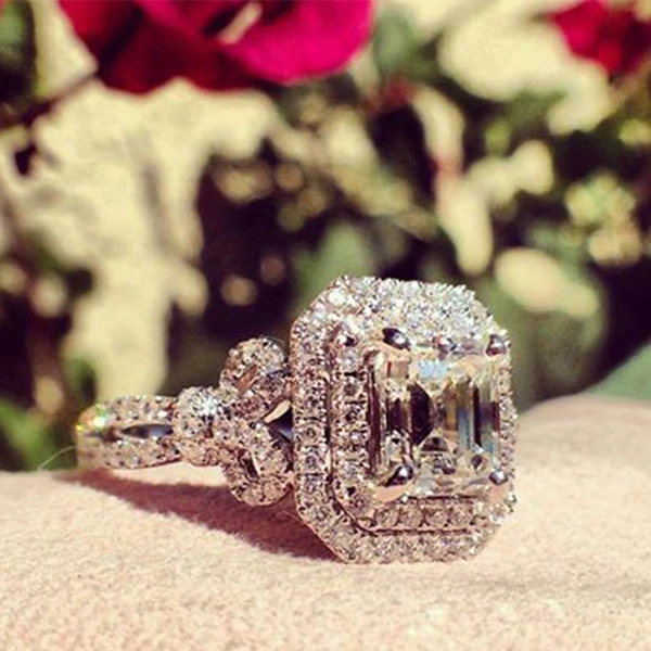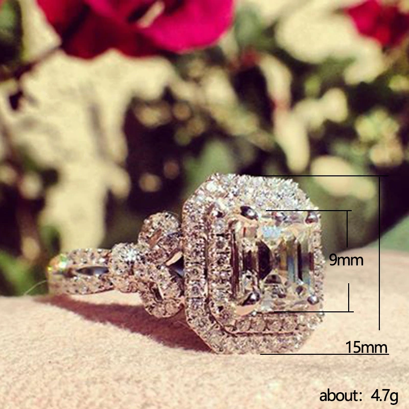 خاتم الأميرة المربع الجديد الأكثر مبيعًا على الطراز الأوروبي والأمريكي المرصع بالزركون مجوهرات نسائية خاتم خطوبة وزواج