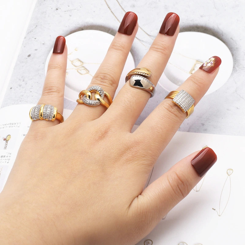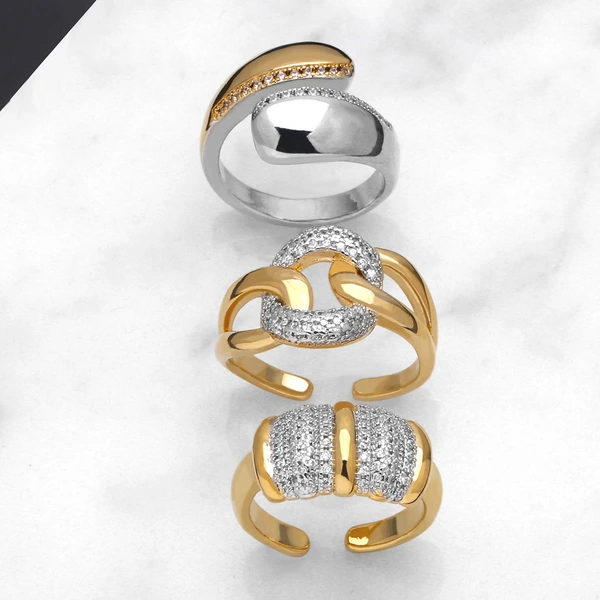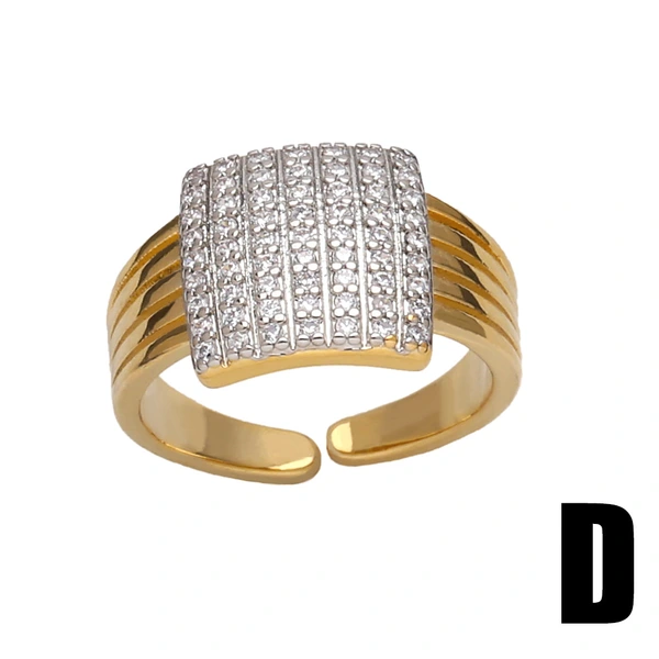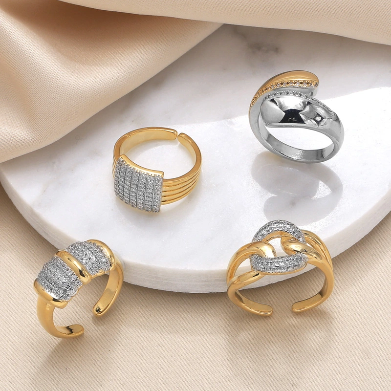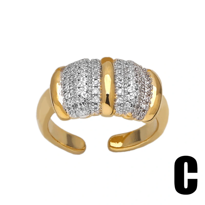 خاتم زركون عصري جديد، خاتم مفتوح مطلي بالذهب بلونين، خاتم نسائي rir46