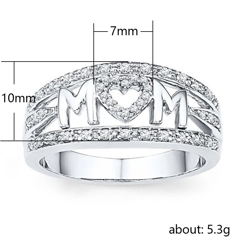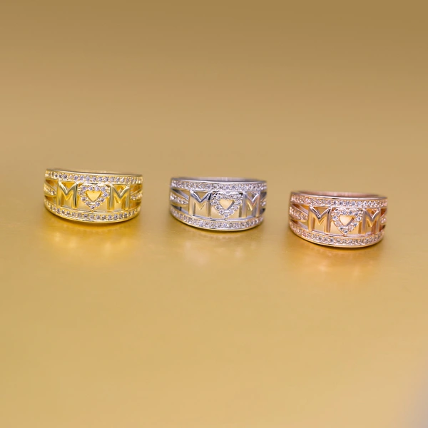 خاتم زركون على شكل قلب رائع للأم الأكثر مبيعًا مطلي بالنحاس والذهب والفضة والذهب الوردي بثلاثة ألوان