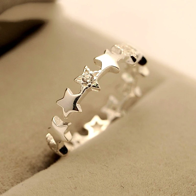 خاتم زركون على شكل نجمة صغيرة منعشة على الطراز الكوري خاتم ألماس ناعم على شكل نجمة خماسية مفتوح قابل للتعديل للبيع بالجملة