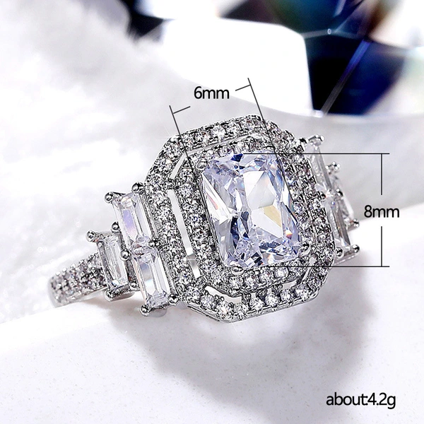 خاتم الأميرة المربع الجديد الأكثر مبيعًا على الطراز الأوروبي والأمريكي المرصع بالزركون مجوهرات نسائية خاتم خطوبة وزواج