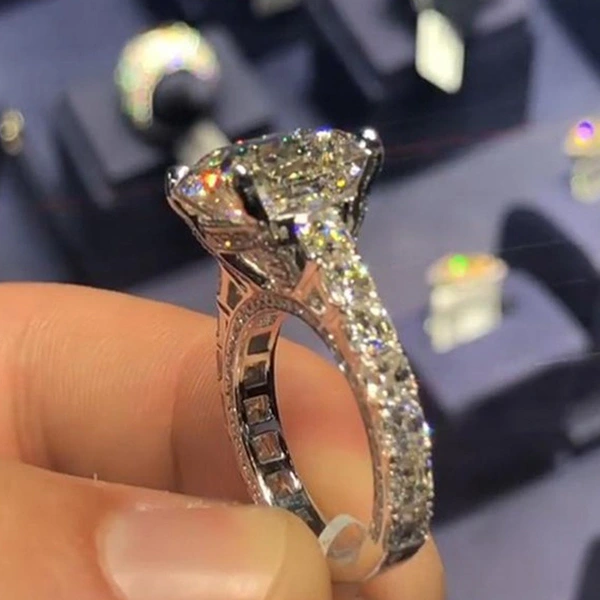 خاتم زركون فاخر على الموضة بتصميم هندسي إبداعي خاتم نسائي من الذهب الأبيض مجوهرات رائجة البيع