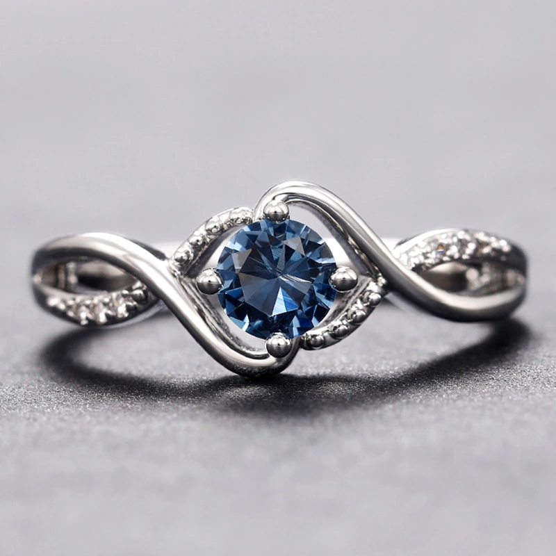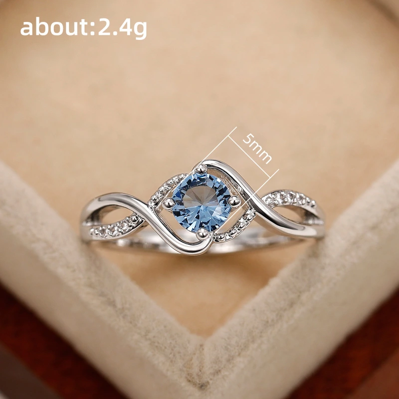خاتم زركون ماسي أزرق متموج، خاتم إصبع السبابة الفاخر عالي الجودة، مجوهرات شخصية نسائية عصرية