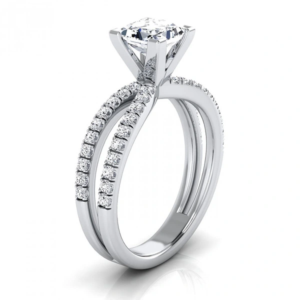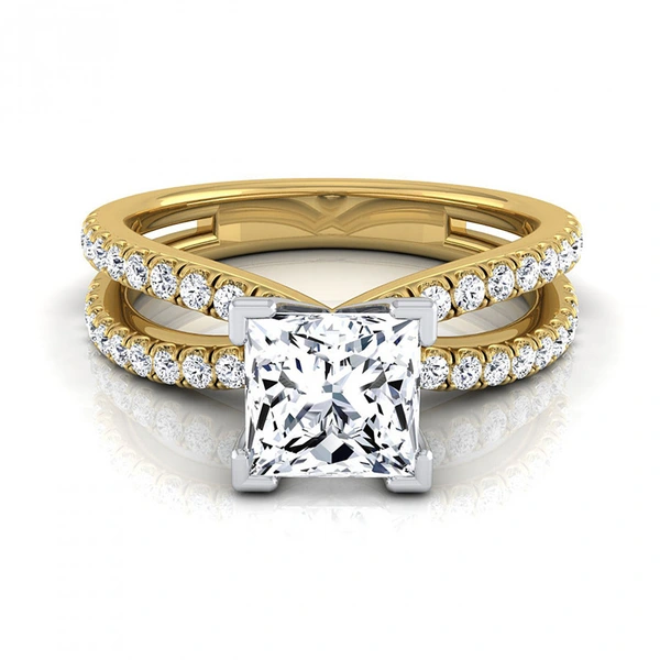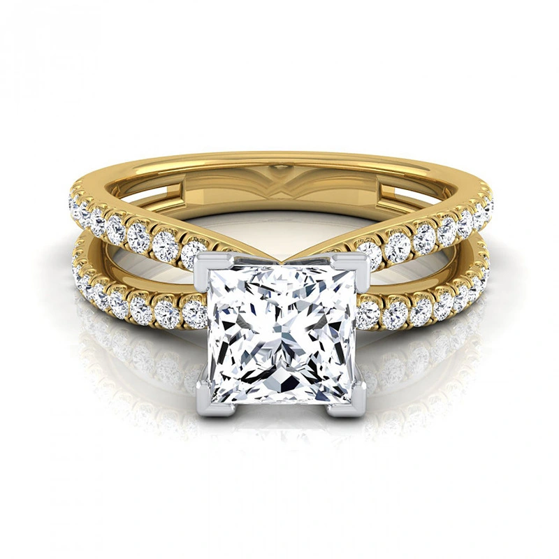 خاتم كلاسيكي مرصع بأحجار الزركون المقلد بأربعة مخالب للنساء، خاتم ذراع ملتوي مزدوج اللون، خاتم خطوبة وزواج للنساء