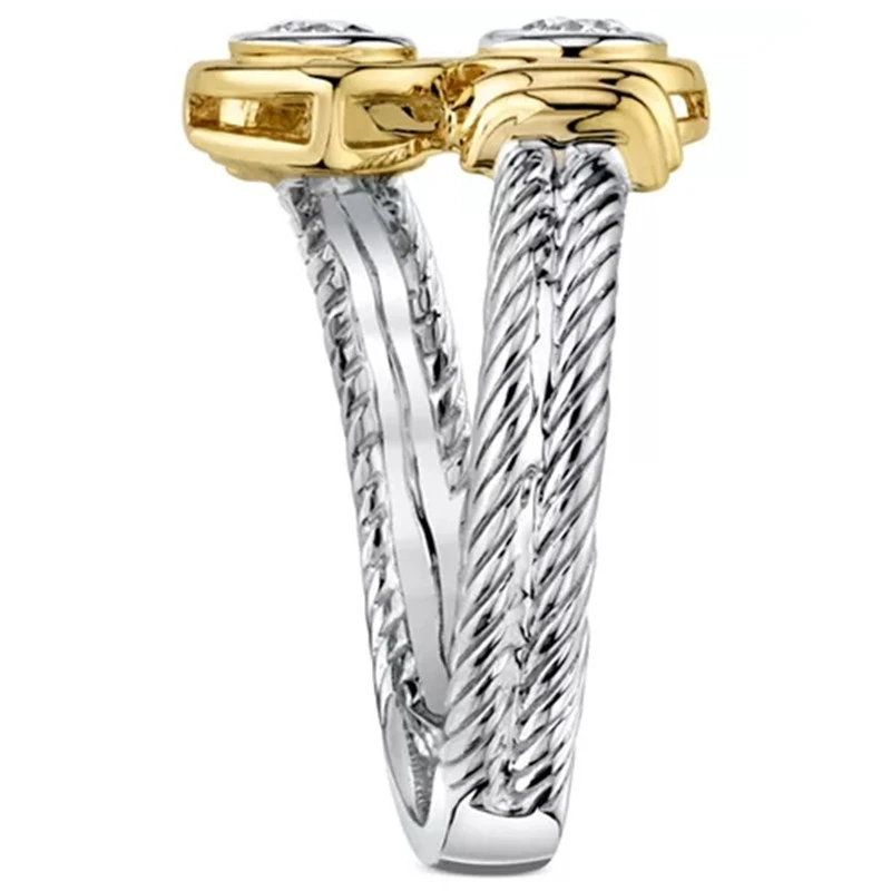 خاتم زركون ملتوي ثنائي اللون بتصميم أوروبي وأمريكي عصري جديد للبيع بالجملة خاتم مجوهرات للسيدات