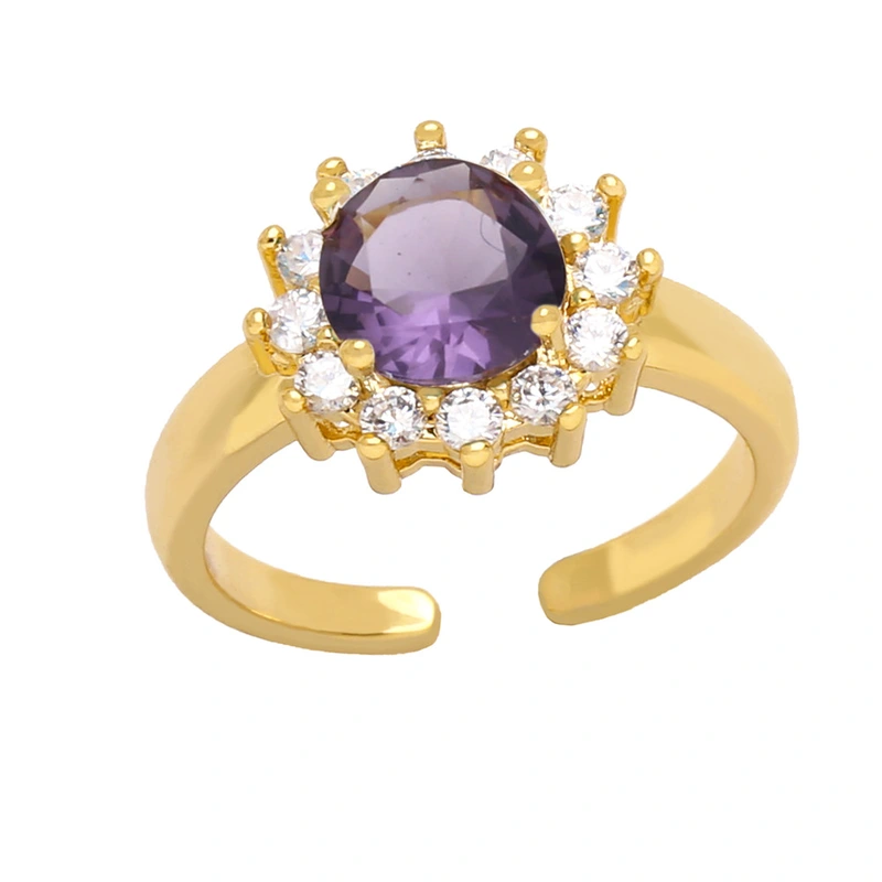 خاتم زركون ملون للبيع بالجملة، خاتم بسيط مفتوح من مشاهير الإنترنت من أوروبا والولايات المتحدة، بتصميم بسيط ومزاج مميز، riq65