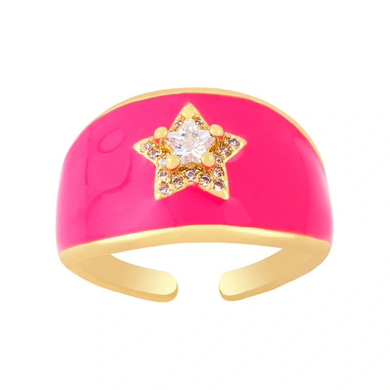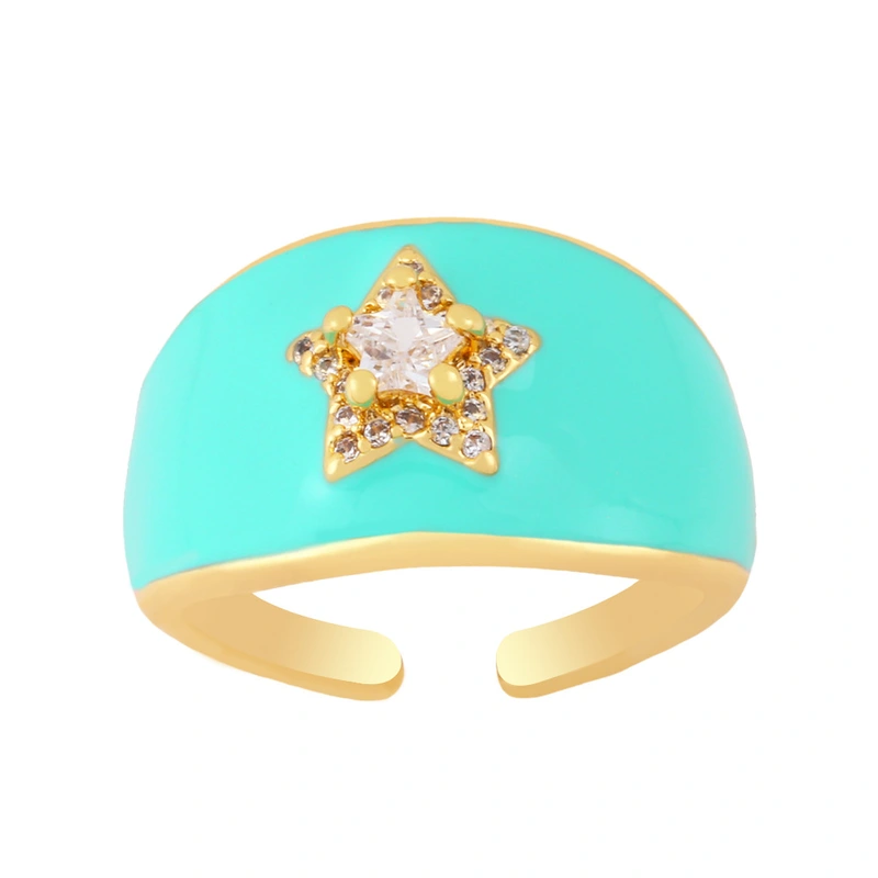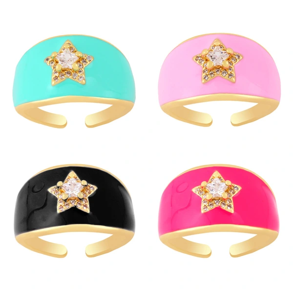 خاتم زركون هندسي على شكل نجمة خماسية الشكل، خاتم على شكل قطرة زيت ملونة، تخفيضات ساخنة، rin68