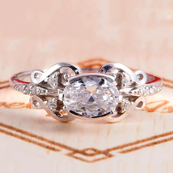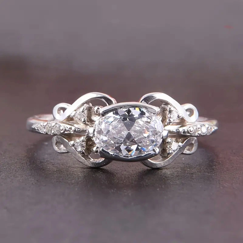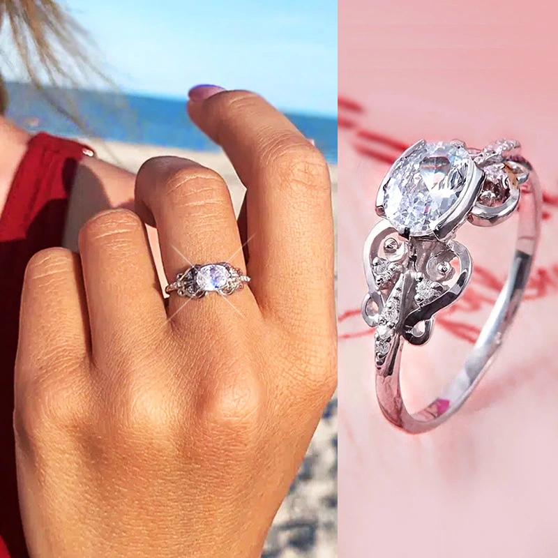 خاتم زفاف أنيق من الزركون بتصميم أنيق من الدانتيل الرائع مرصع بالجواهر خاتم بيضاوي الشكل للنساء الأكثر مبيعًا