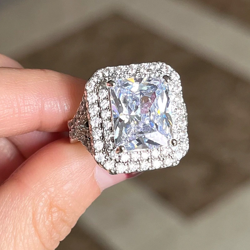 خاتم زفاف جديد كبير مستطيل الشكل من الزركون مقاس 10*12، خاتم هدية للذكرى السنوية