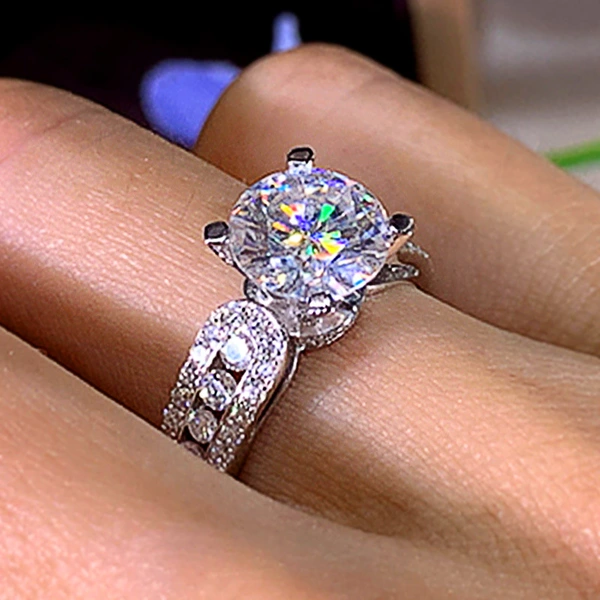 خاتم زفاف جديد كلاسيكي بأربعة مخالب من الزركون والكريستال، خاتم خطوبة عصري للنساء