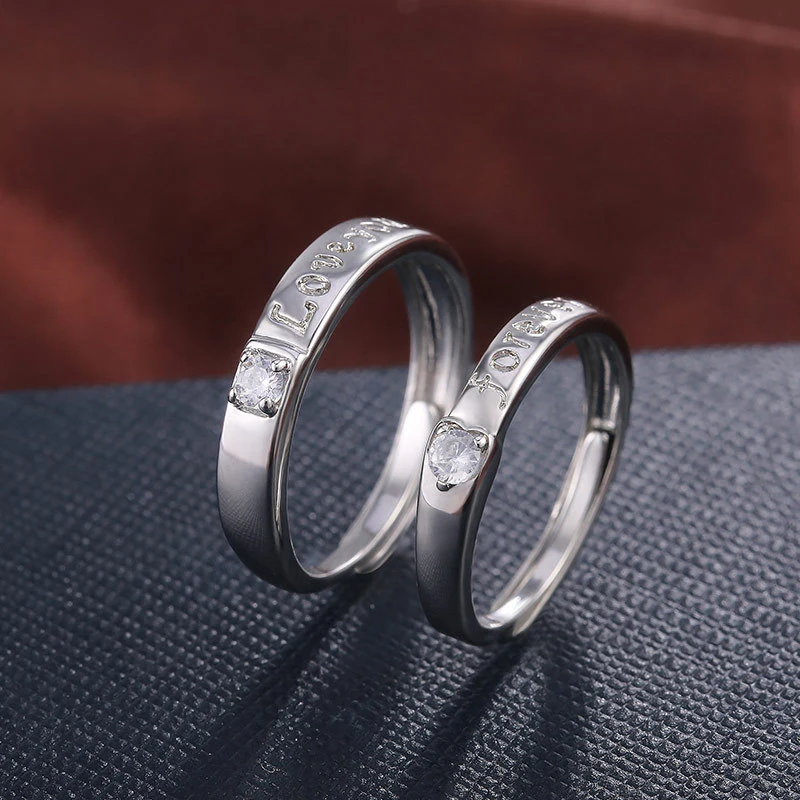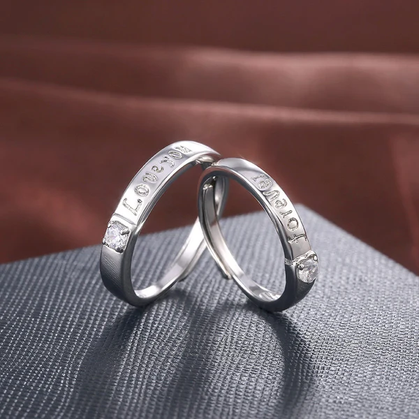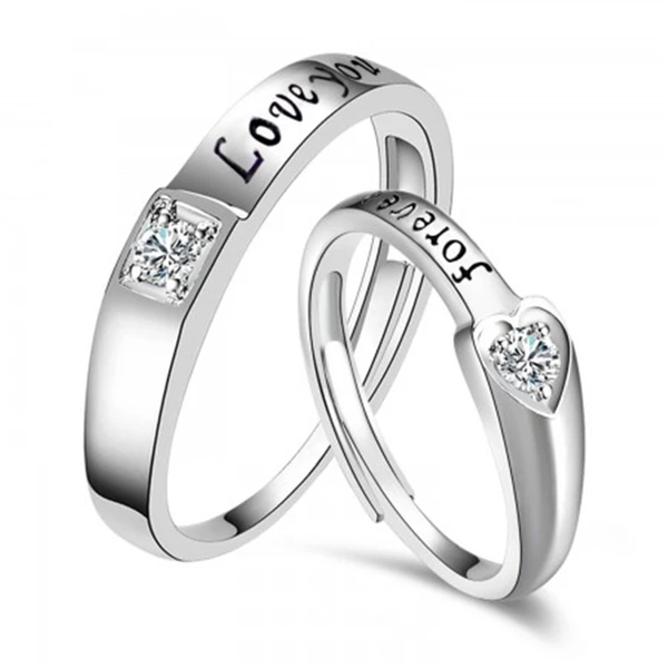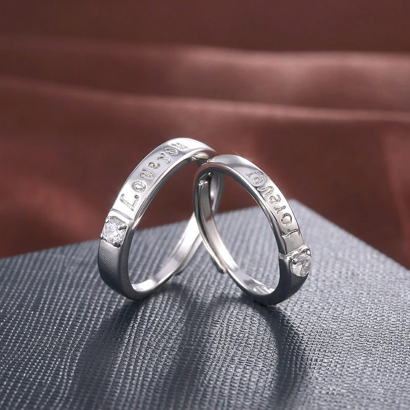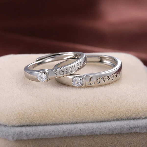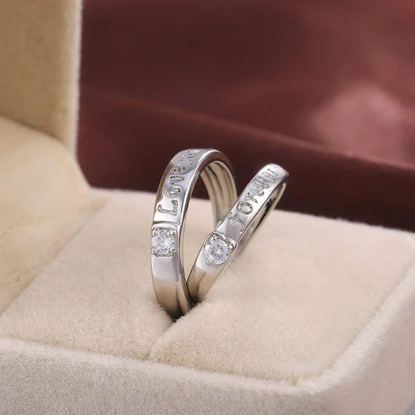 خاتم زفاف جديد للبيع بسعر خاص مطبوع عليه عبارة "أحبك إلى الأبد" للزوجين