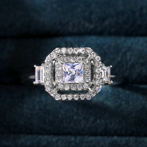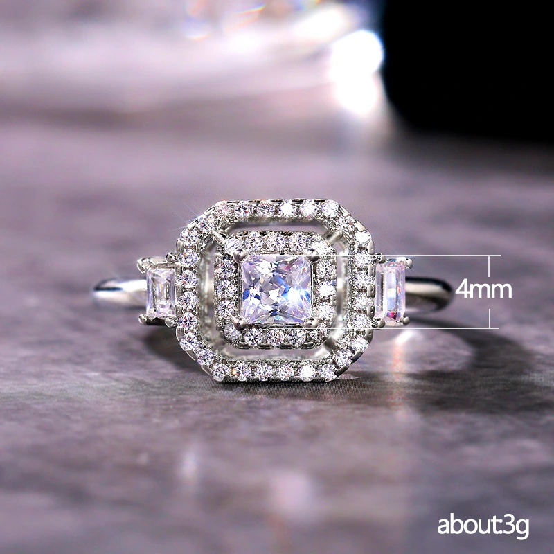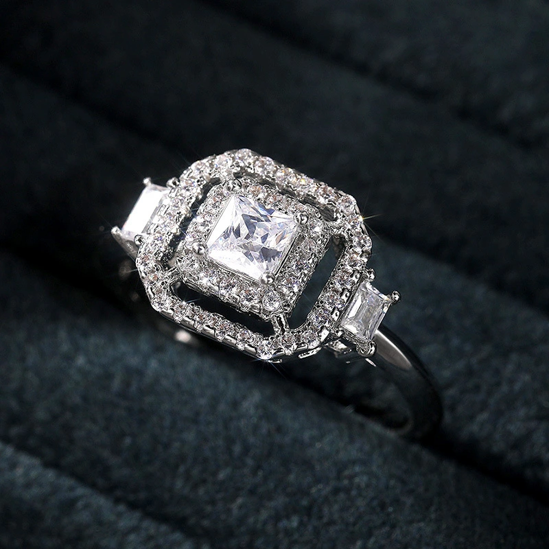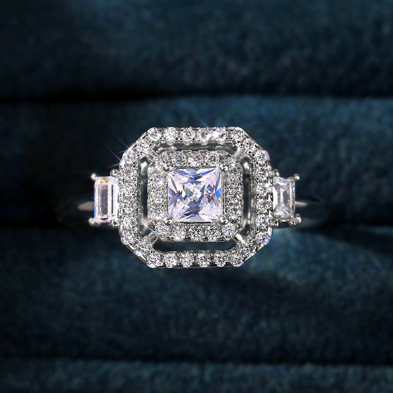خاتم الأميرة المربع الجديد الأكثر مبيعًا على الطراز الأوروبي والأمريكي المرصع بالزركون مجوهرات نسائية خاتم خطوبة وزواج