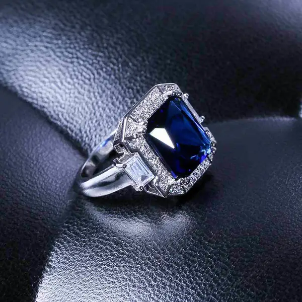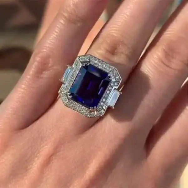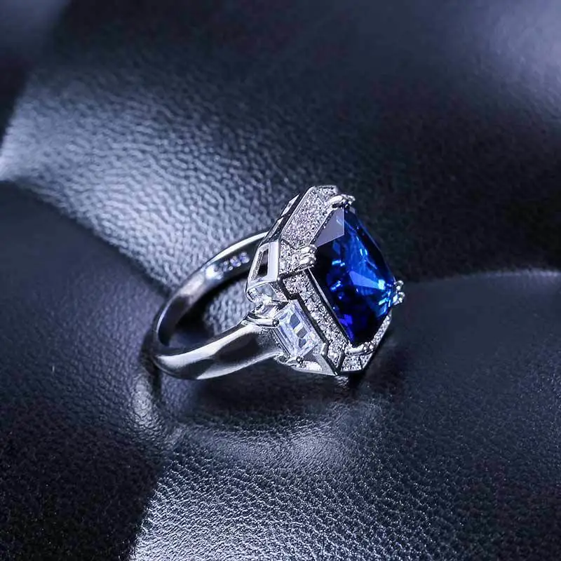 خاتم زفاف فاخر جديد من الأحجار الكريمة الزرقاء الأوروبية والأمريكية خاتم خطوبة إبداعي للتجارة الإلكترونية مجوهرات يدوية شائعة