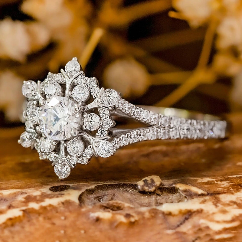 خاتم زفاف فاخر مرصع برقاقات الثلج بتصميم جديد، خاتم زفاف أنيق وعصري، هدية تذكارية