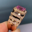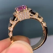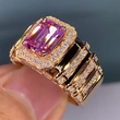 خاتم زفاف فاخر من الكريستال الوردي للأميرة على الطراز الأوروبي والأمريكي الخفيف، خاتم خطوبة من الألماس المربع الذهبي والزركون الملون بالأحجار الكريمة