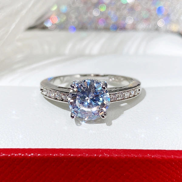 خاتم زفاف كلاسيكي بأربعة مخالب، خاتم خطوبة مرصع بالألماس بثمانية قلوب وثمانية أسهم، خاتم مخصص مرصع بالزركون الدقيق للنساء