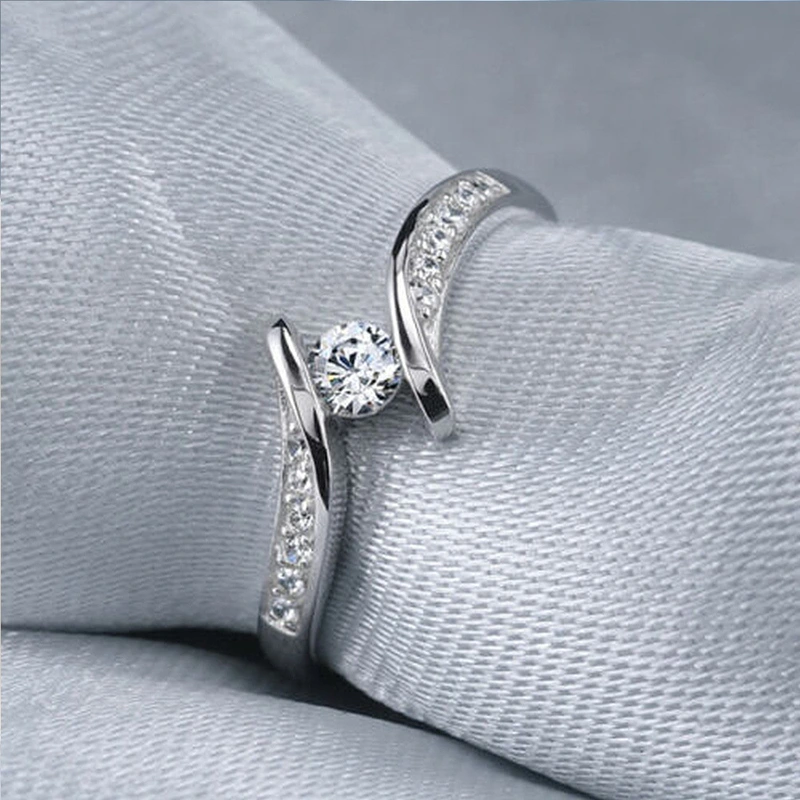 خاتم زفاف موصى به من xiaohongshu خاتم زركون ذراع ملتوي مع عناق سعيد للنساء خاتم بلاتيني كلاسيكي مجوهرات