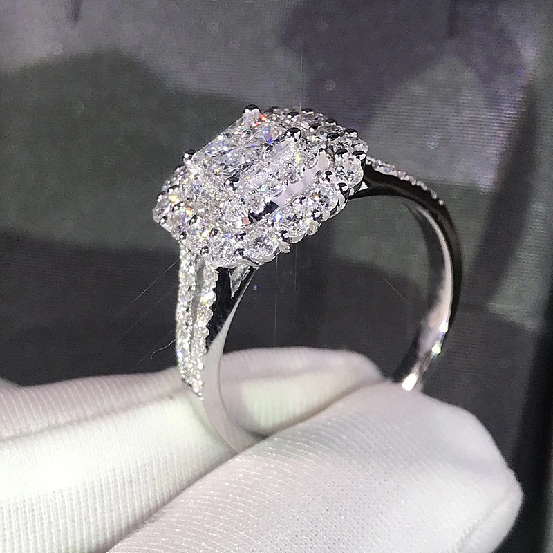 خاتم الأميرة المربع الجديد الأكثر مبيعًا على الطراز الأوروبي والأمريكي المرصع بالزركون مجوهرات نسائية خاتم خطوبة وزواج