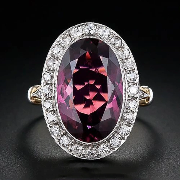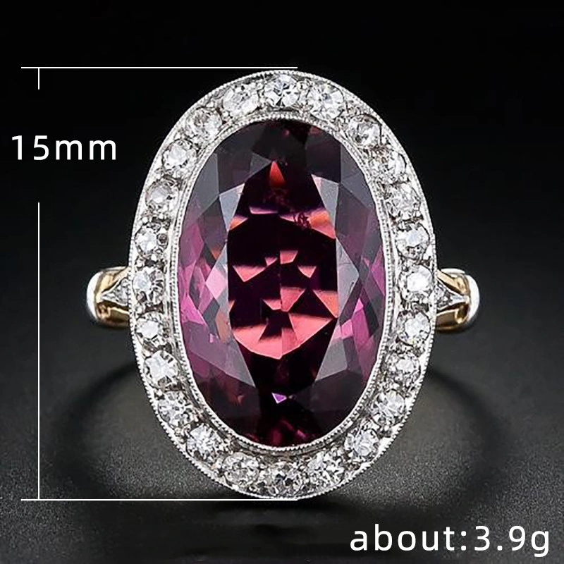 خاتم زفاف نسائي كلاسيكي من المجوهرات الأوروبية والأمريكية مصنوع من الزركون الأحمر بلونين من الرمان