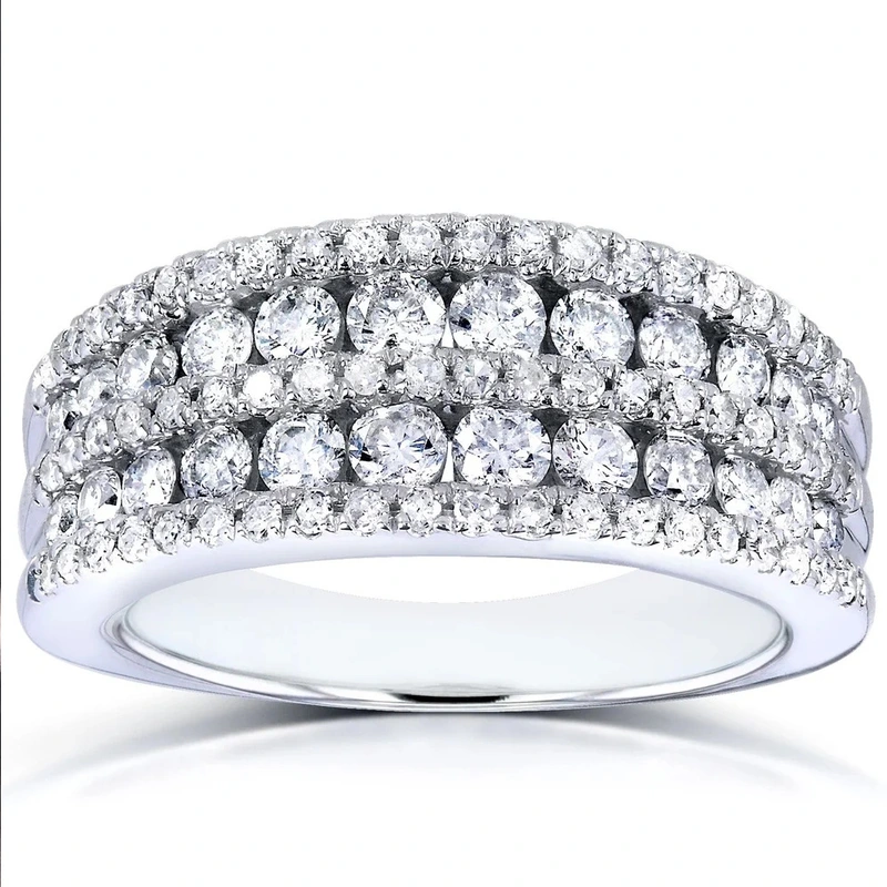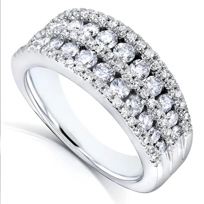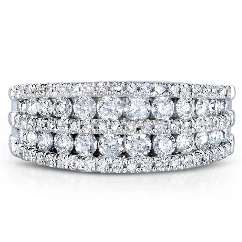 خاتم زفاف نسائي من الألماس المرصع بالزركون المرصع بالألماس بالكامل متعدد الطبقات بتصميم فرنسي رومانسي