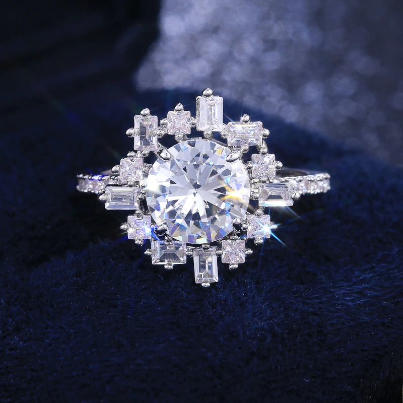 خاتم زفاف نسائي هندسي مخصص من الزركون الأكثر مبيعًا مجوهرات أوروبية وأمريكية رائجة البيع بالجملة