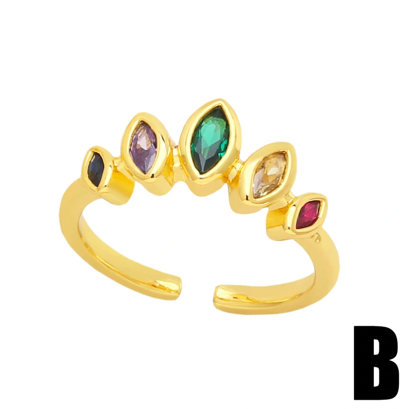 خاتم بتصميم أوروبي وأمريكي فاخر، خاتم عصري من الزركون على شكل عين الحصان، خاتم إصبع السبابة بتصميم مجوف متعدد الطبقات