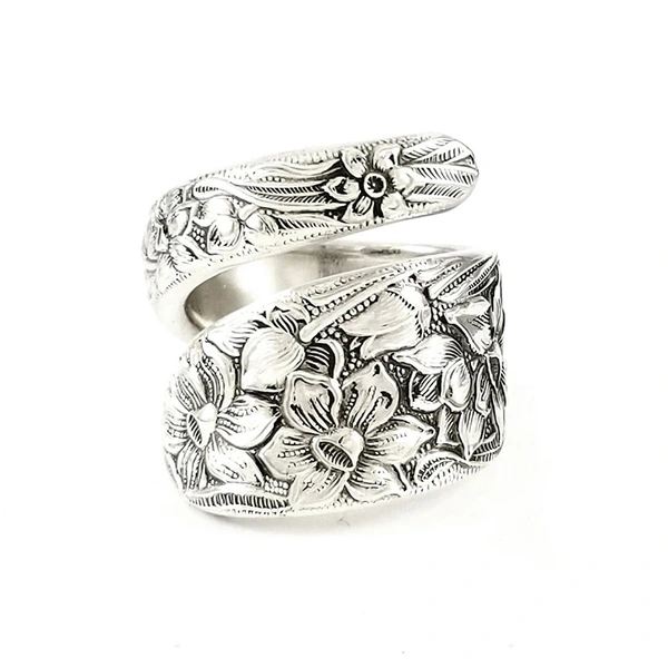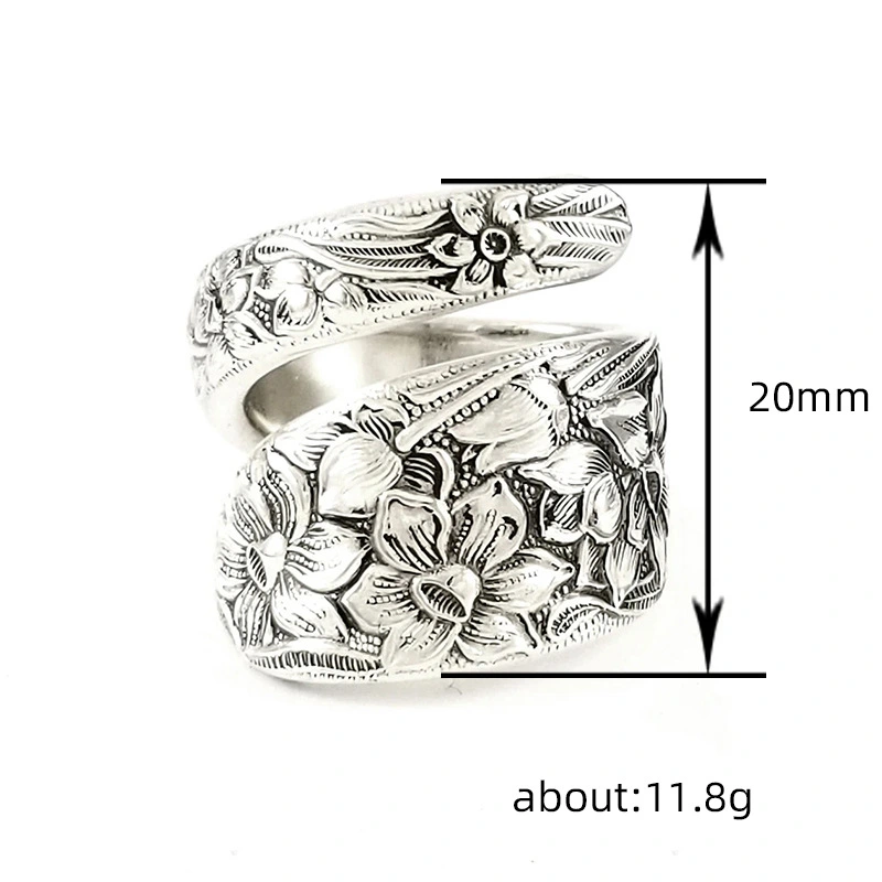 خاتم زنبق مفتوح عتيق للبيع الساخن مجوهرات زهرة منحوتة خاتم قديم أنيق