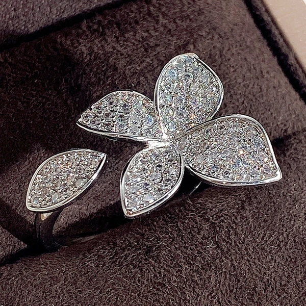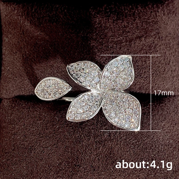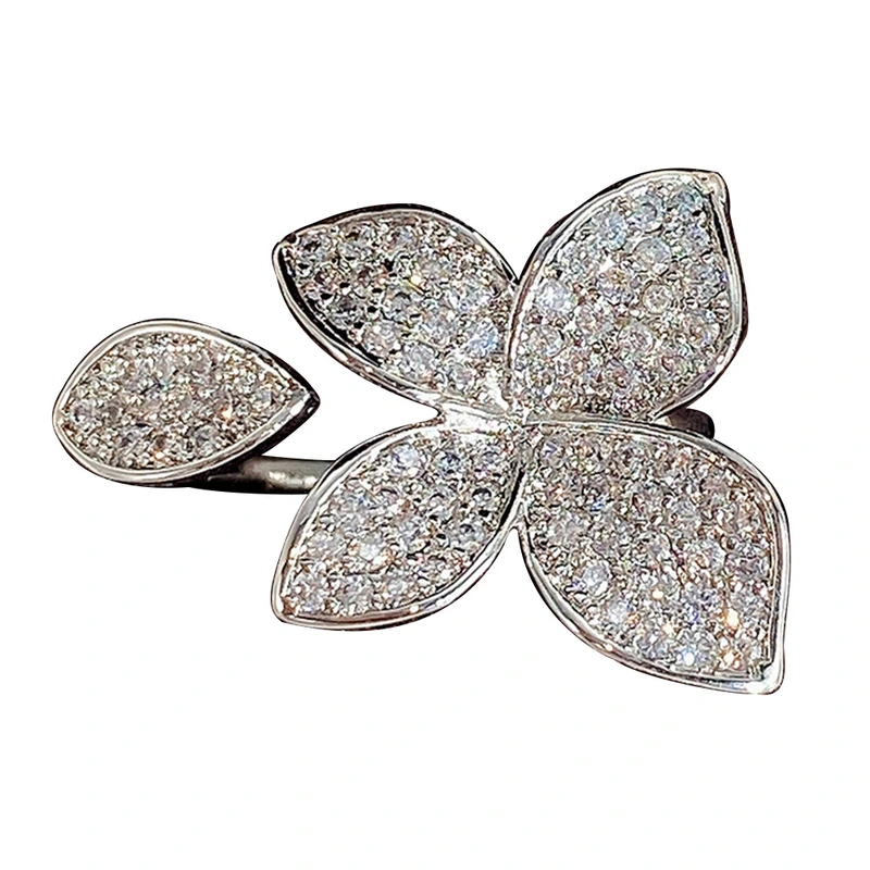 خاتم زهرة أوروبية وأمريكية جديدة من النحاس مرصع بالكامل بالزركون خاتم نسائي خفيف فاخر رائع خاتم مفتوح مجوهرات يدوية