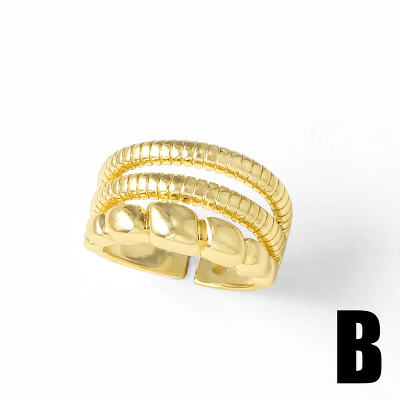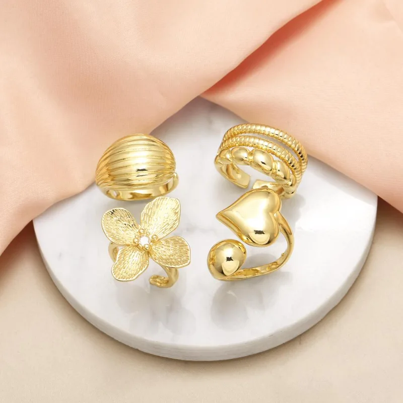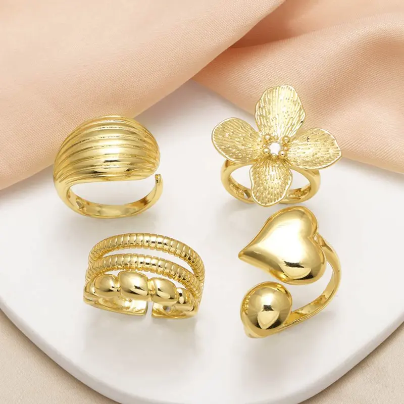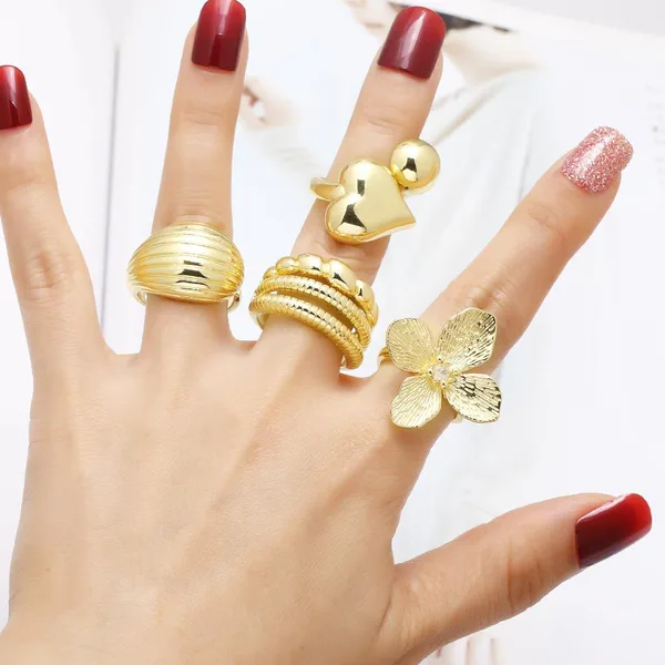 خاتم زهرة الحب الناعم بتصميم جديد ومميز للنساء مطلي بالنحاس عيار 18 قيراطًا وخاتم غير منتظم rir40