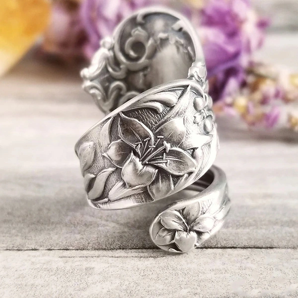 خاتم زهرة الفاوانيا المفتوح الجديد على شكل زهرة عتيقة خاتم مجوهرات نسائي عصري بسيط مجوهرات يدوية قديمة للنساء
