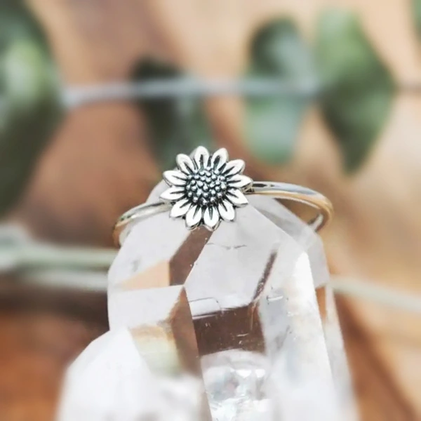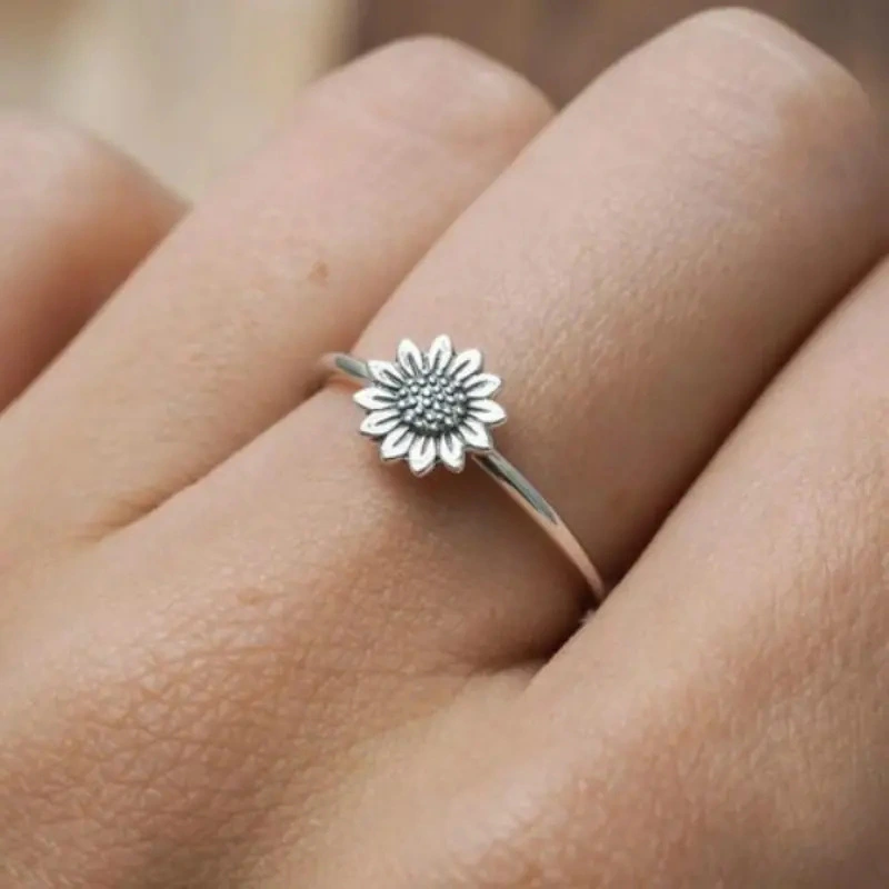 خاتم زهرة عباد الشمس للنساء مجوهرات يابانية وكورية خاتم إصبع السبابة خاتم مزاج جديد وفني للنساء