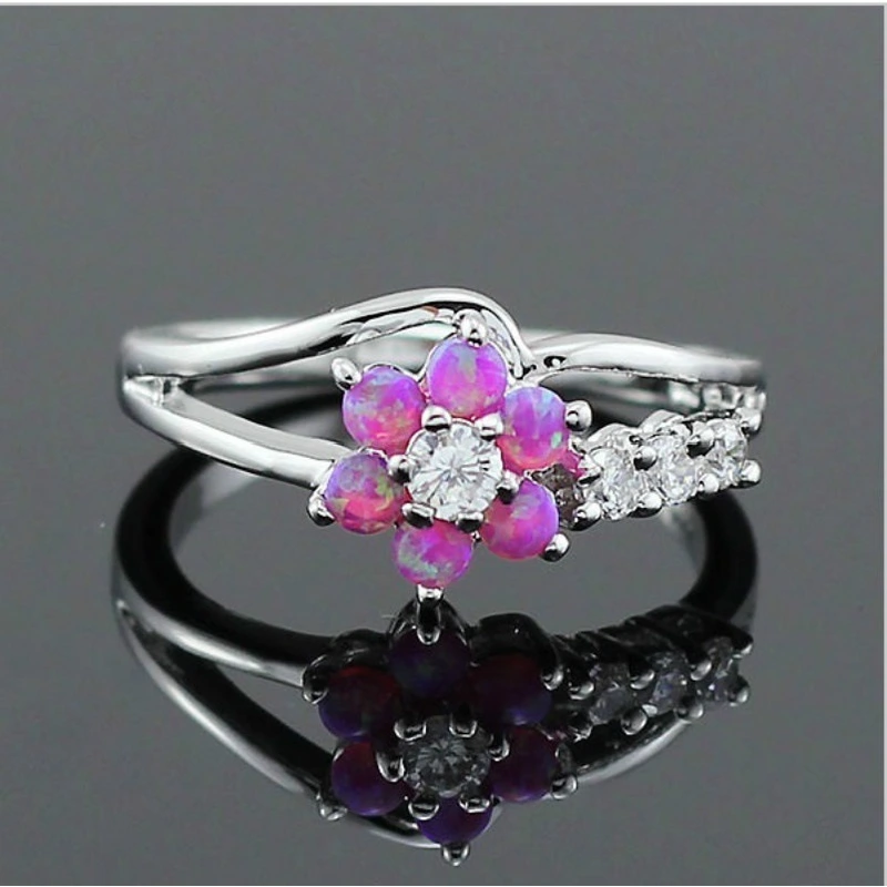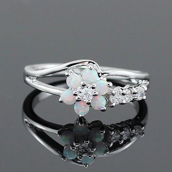 خاتم زهرة على الطراز الأوروبي والأمريكي الأكثر مبيعًا بالجملة مجوهرات أوبال صناعية للنساء