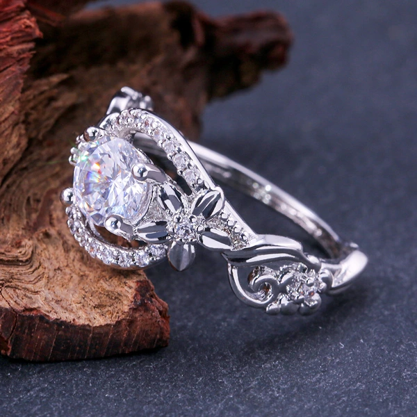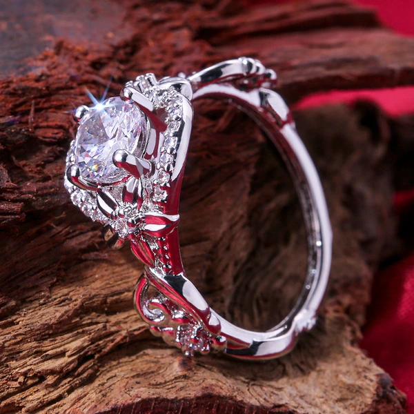 خاتم فلاش فائق الجودة جديد الأكثر مبيعًا على شكل فرع شجرة مزود بأربعة مخالب ومزين بإضاءة حلقة فاخرة لحفلات الزفاف للصديقة