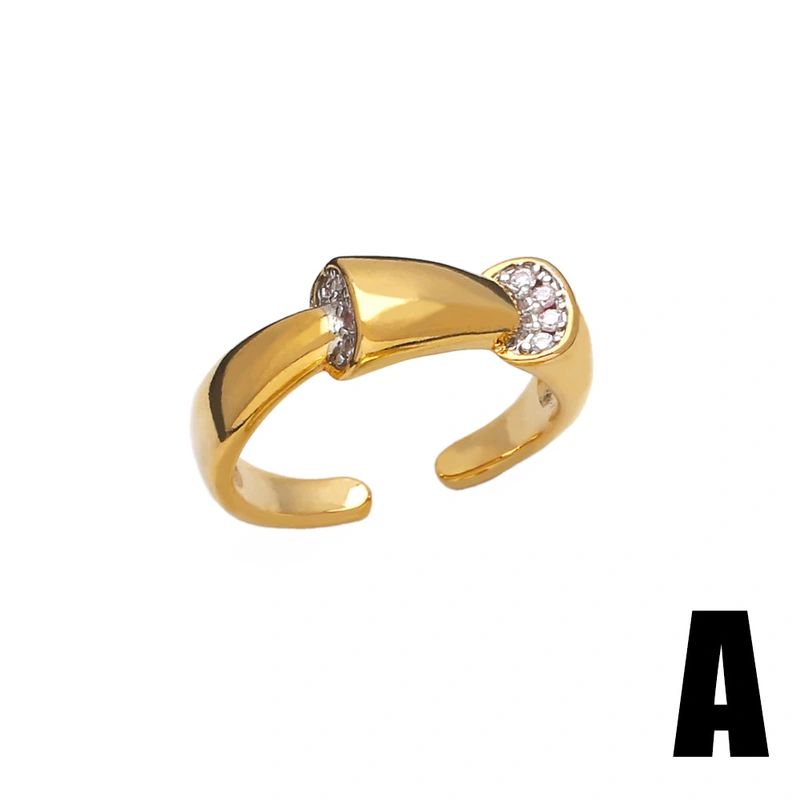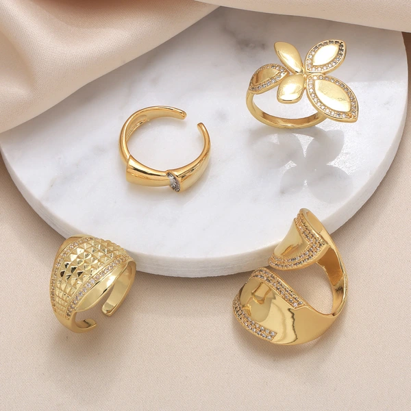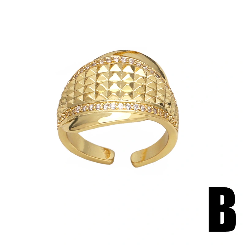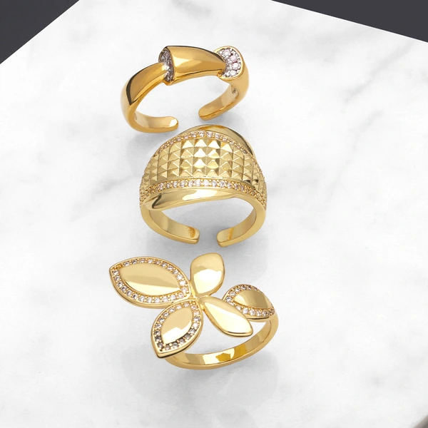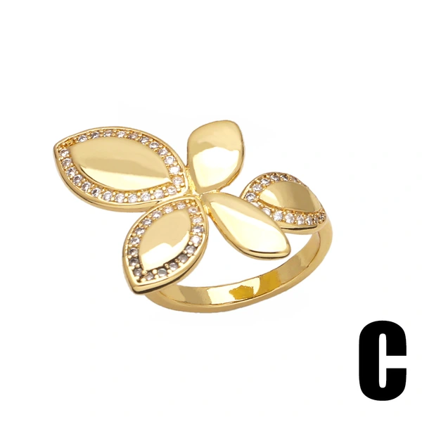 خاتم زهرة مرصع بالزركون بتصميم أوروبي وأمريكية، شخصية أنثوية متعددة الاستخدامات، مطلي بالنحاس عيار 18 قيراطًا، خاتم مفتوح rij57