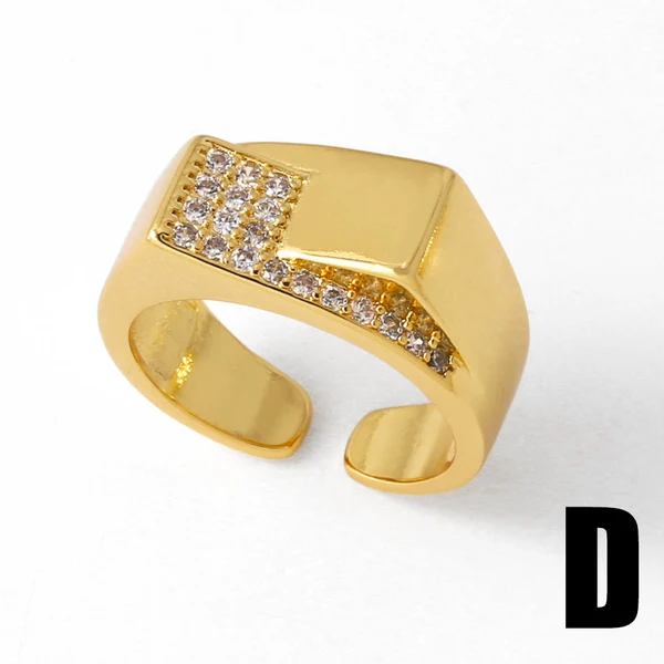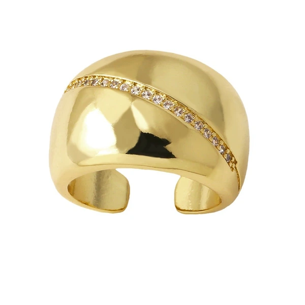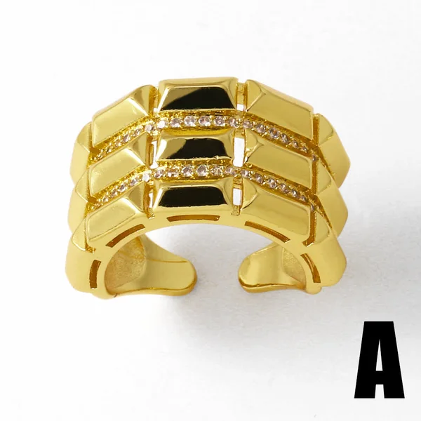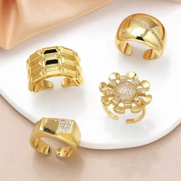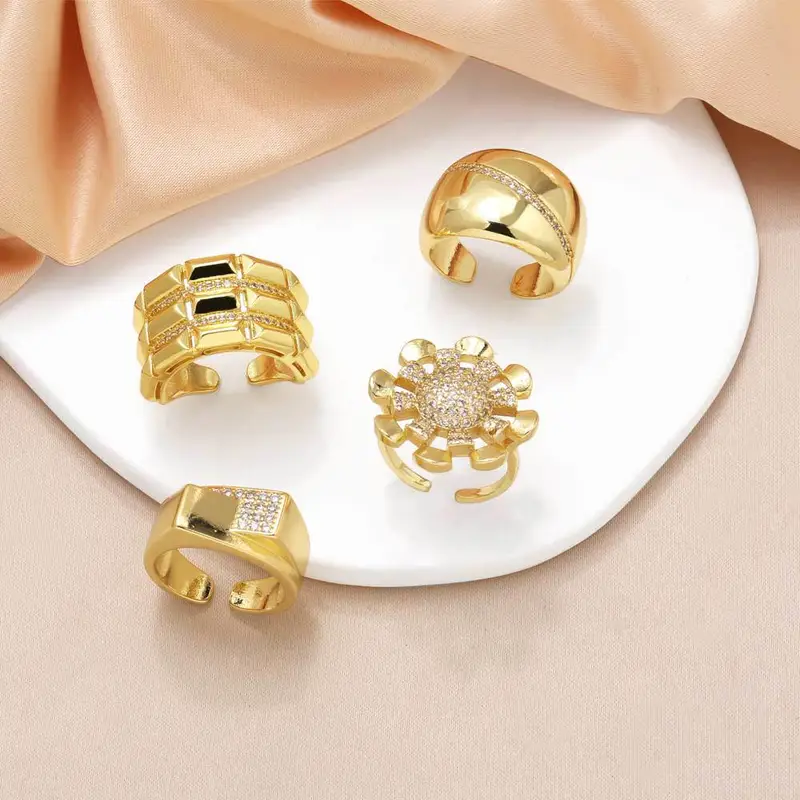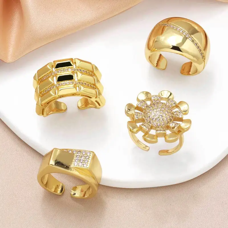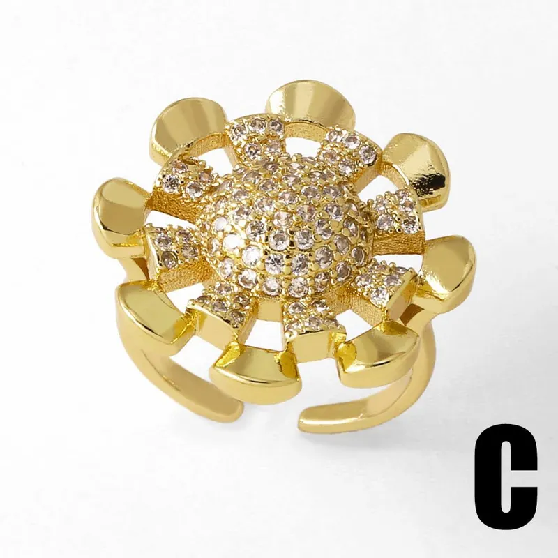 خاتم زهرة من المجوهرات الأكثر مبيعًا للنساء مطلي بالذهب مرصع بالزركون غير المنتظم خاتم مفتوح rih18