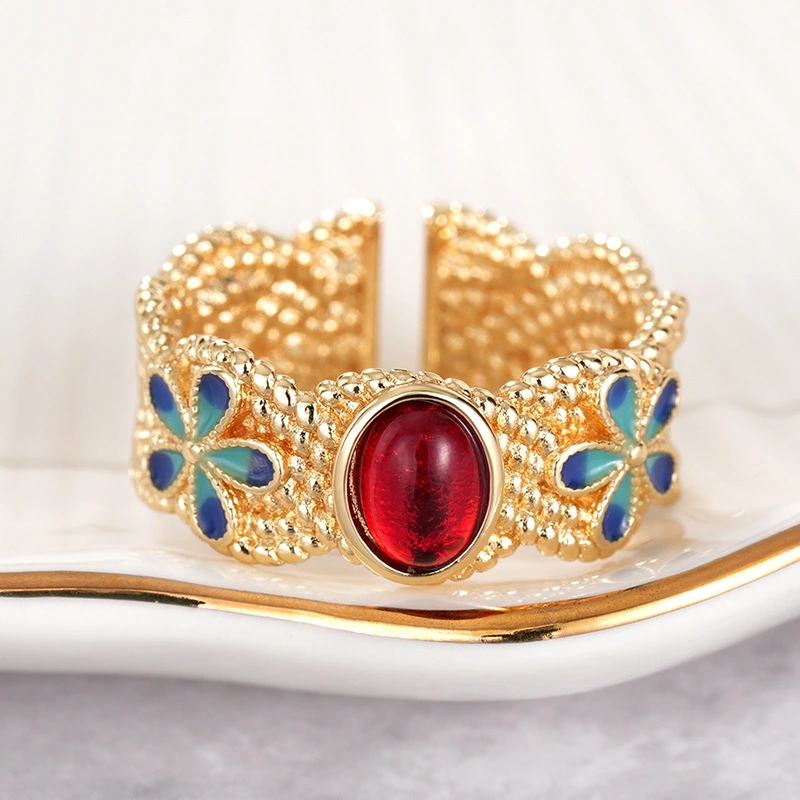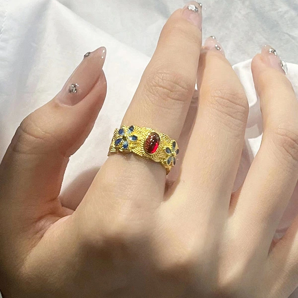 خاتم زهري فاخر على الطراز الشرق أوسطي مع فتحة قابلة للتعديل، على الطراز العرقي، مجوهرات نيتش غريبة