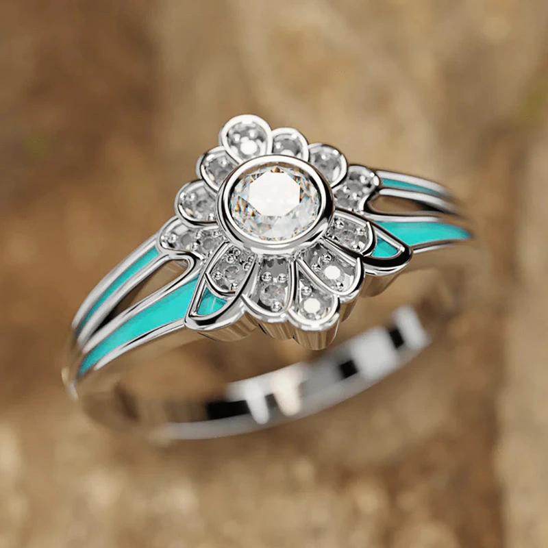 خاتم زهور ريترو إبداعي للنساء، خاتم زهرة الأقحوان الصغيرة، خاتم زركون دقيق مرصع