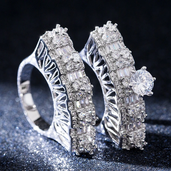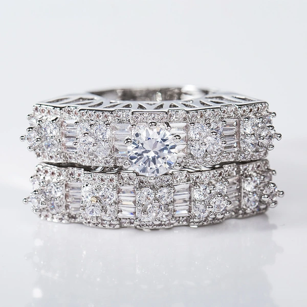 خاتم زوجين أوروبي وأمريكي فاخر جديد عالي الجودة من الزركون خاتم ألماس كامل رائع مجوهرات