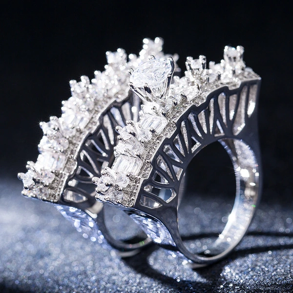 خاتم بتصميم أوروبي وأمريكي فاخر، خاتم عصري من الزركون على شكل عين الحصان، خاتم إصبع السبابة بتصميم مجوف متعدد الطبقات