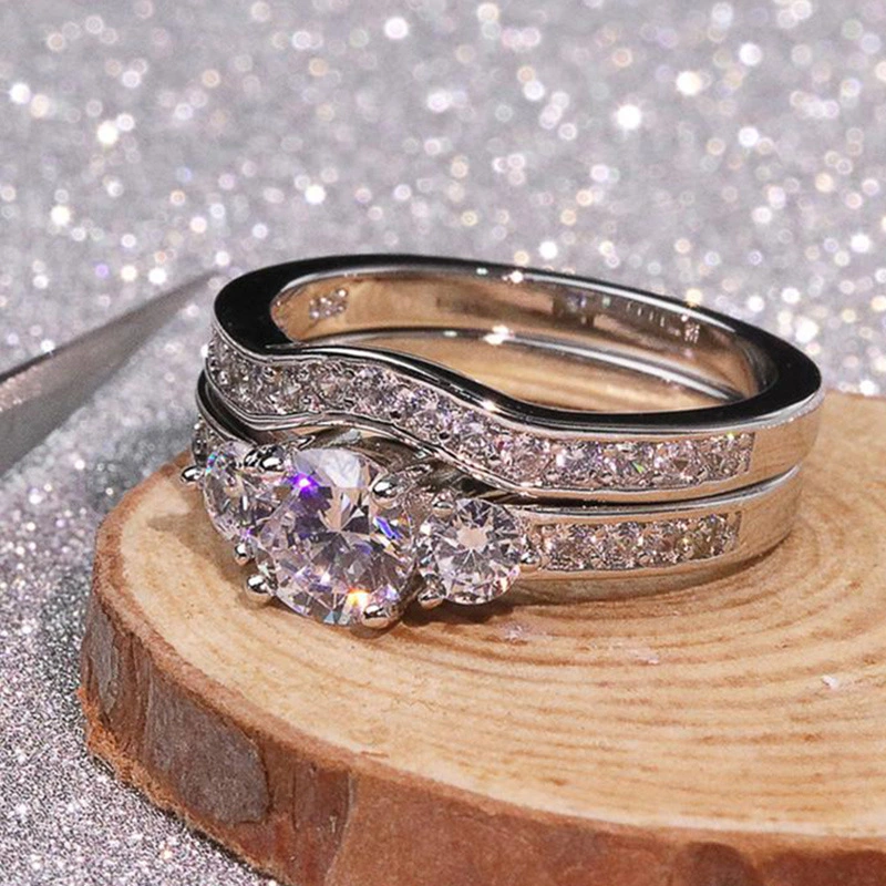 خاتم زوجين بتصميم جديد، خاتم بسيط وأنيق للسيدات، خاتم من الزركون مطلي بالنحاس والبلاتين، خاتم زوجين مختلط