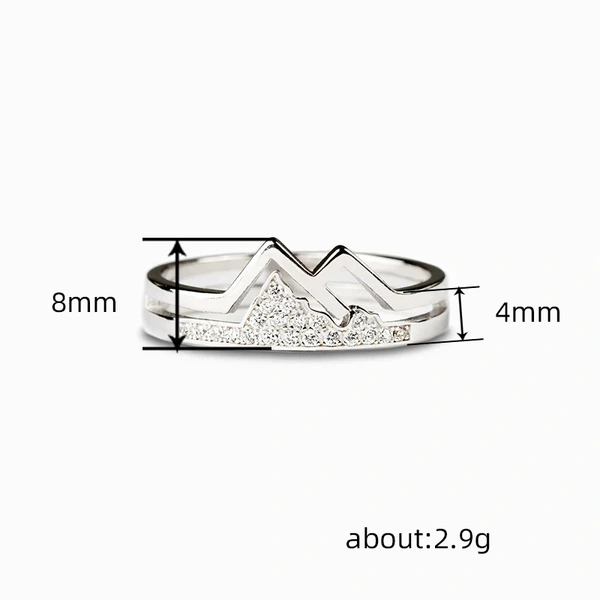 خاتم زوجين جبليين مزدوج الطبقات مرصع على شكل قلب ينبض بالحياة للنساء، خاتم إصبع السبابة البسيط والمتعدد الاستخدامات بتصميم رائع من الزركون