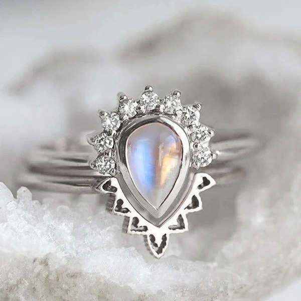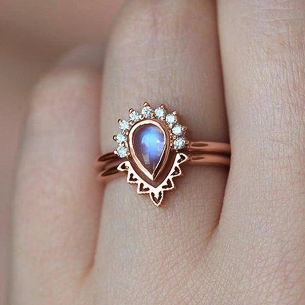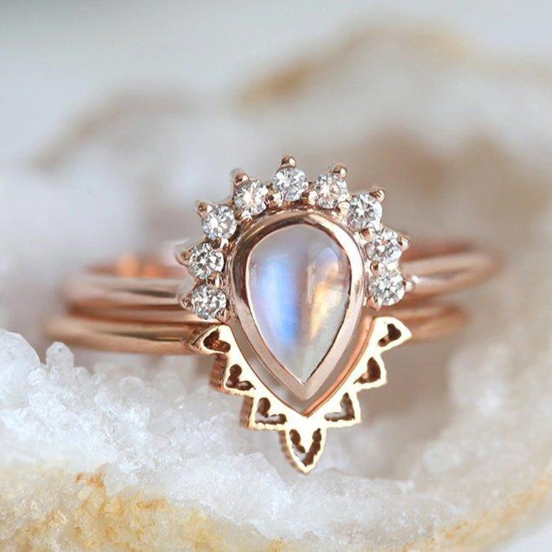 خاتم زوجين لامع على طراز القصر الأوروبي والأمريكي مصنوع من حجر القمر المقلد مجوهرات رائجة البيع على شكل قطرة ماء خاتم هندسي