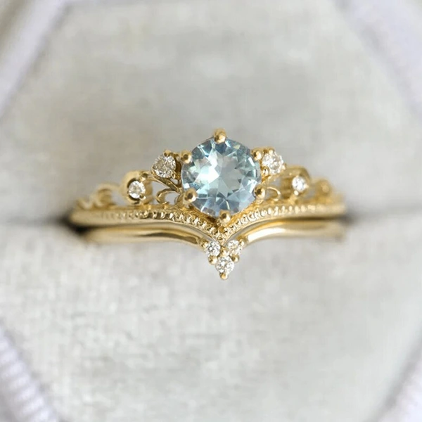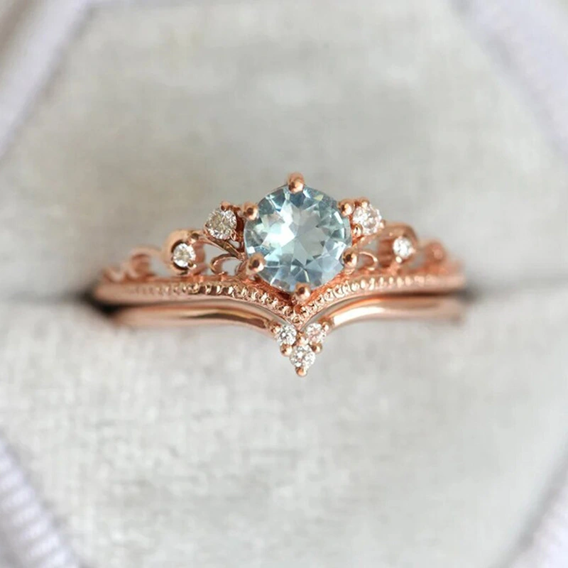 خاتم زوجين لطيفين على شكل تاج الأميرة الأنثوي بتصميم دائري من الزركون مجوهرات رائعة للسيدات
